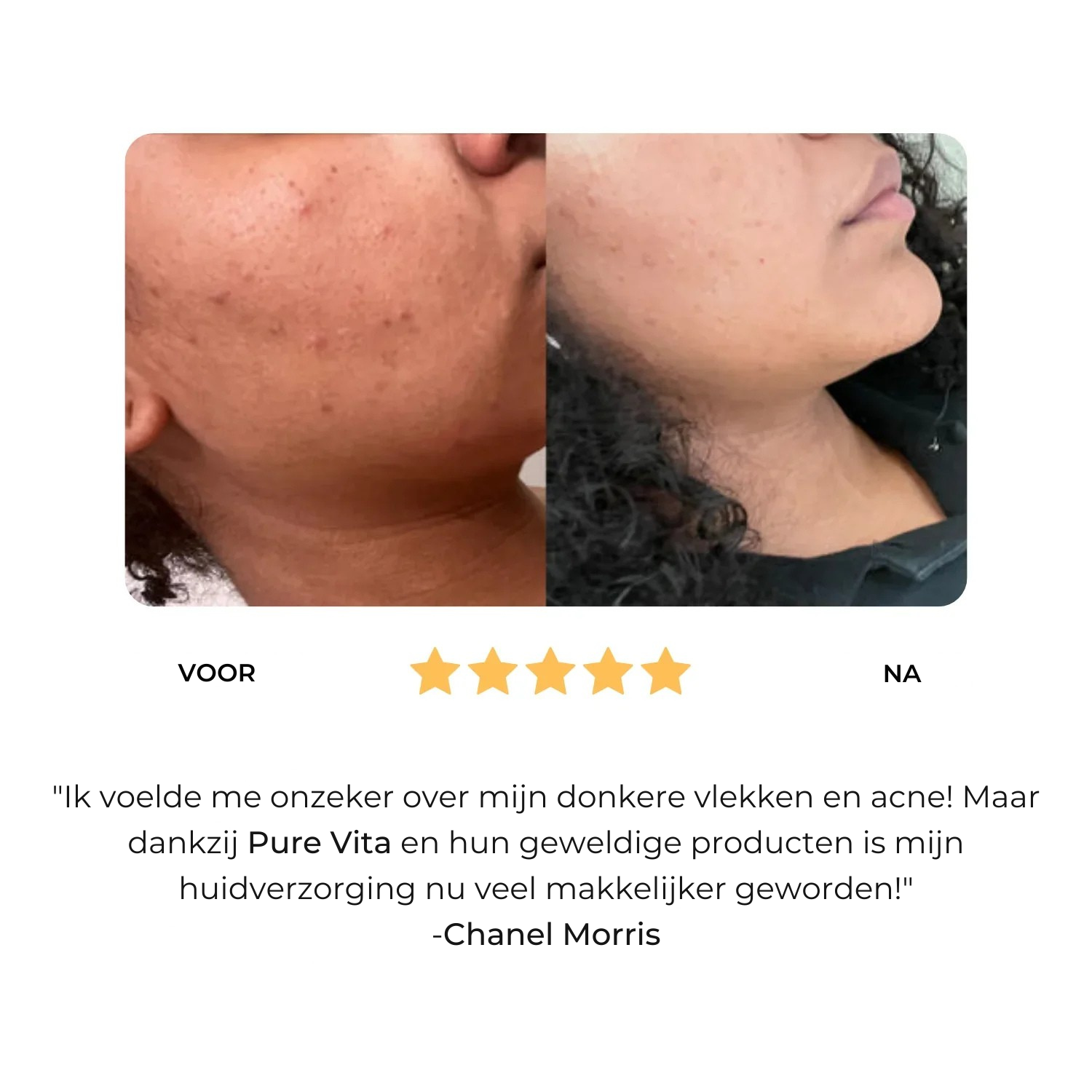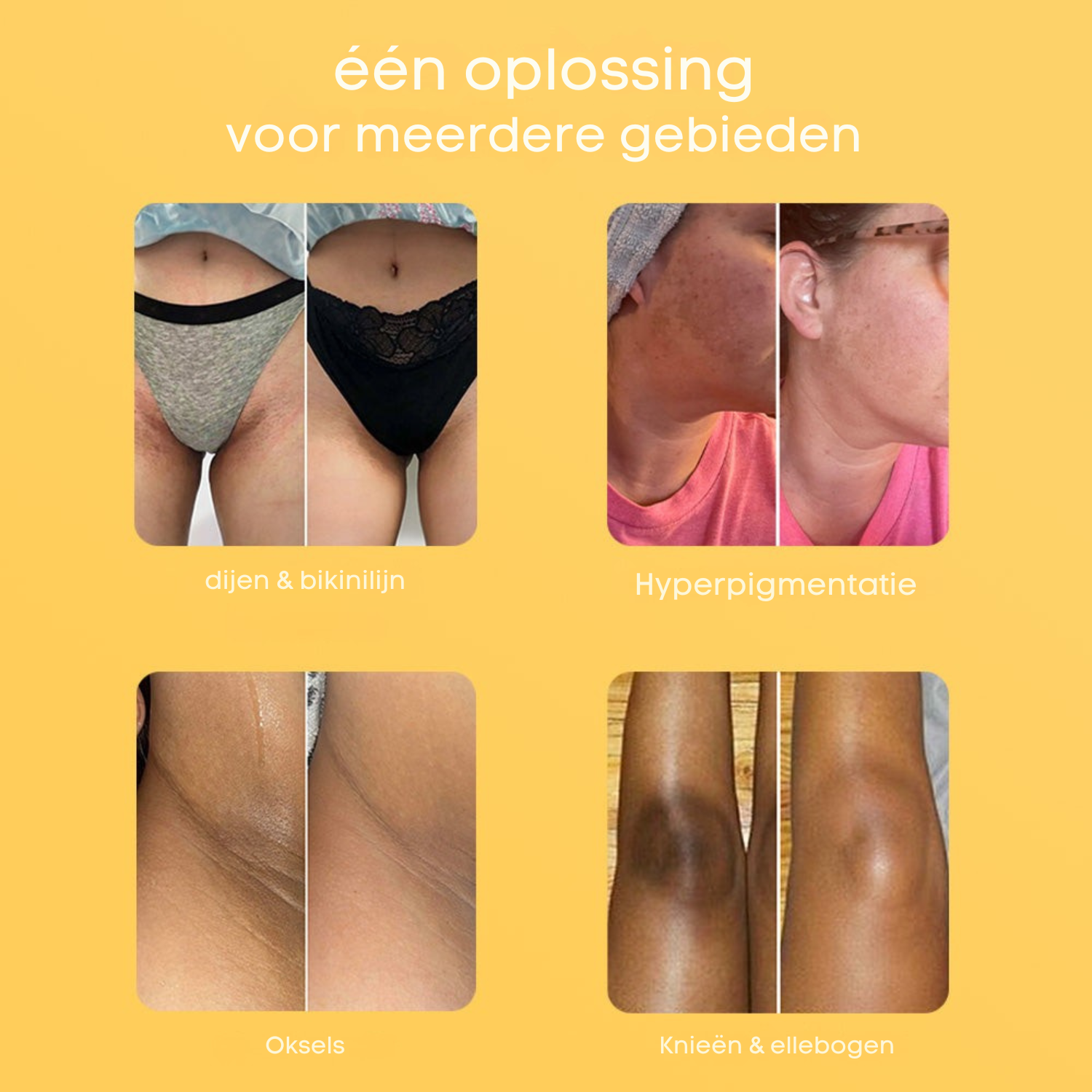 Nee, onze formule is gemaakt met natuurlijke en plantaardige ingrediënten, zonder schadelijke chemicaliën of agressieve bleekmiddelen. Het werkt op een zachte en effectieve manier om je huid te verhelderen en egaler te maken.
